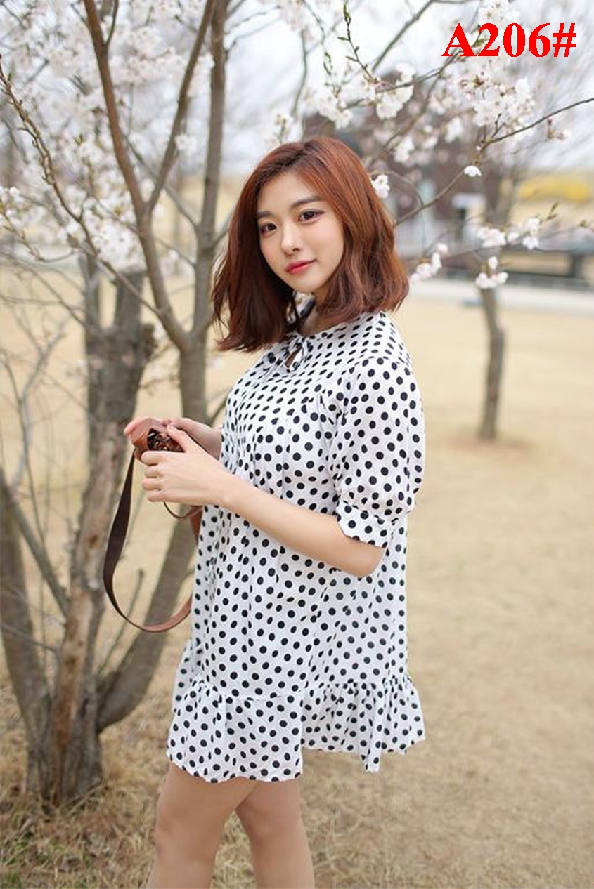ELEON2014最新韩版蝴蝶结波点连衣裙A206#