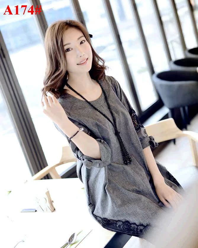 ELEON 2014新 韩版蕾丝拼接圆领套头休闲衬衫 棉麻 大码A174#