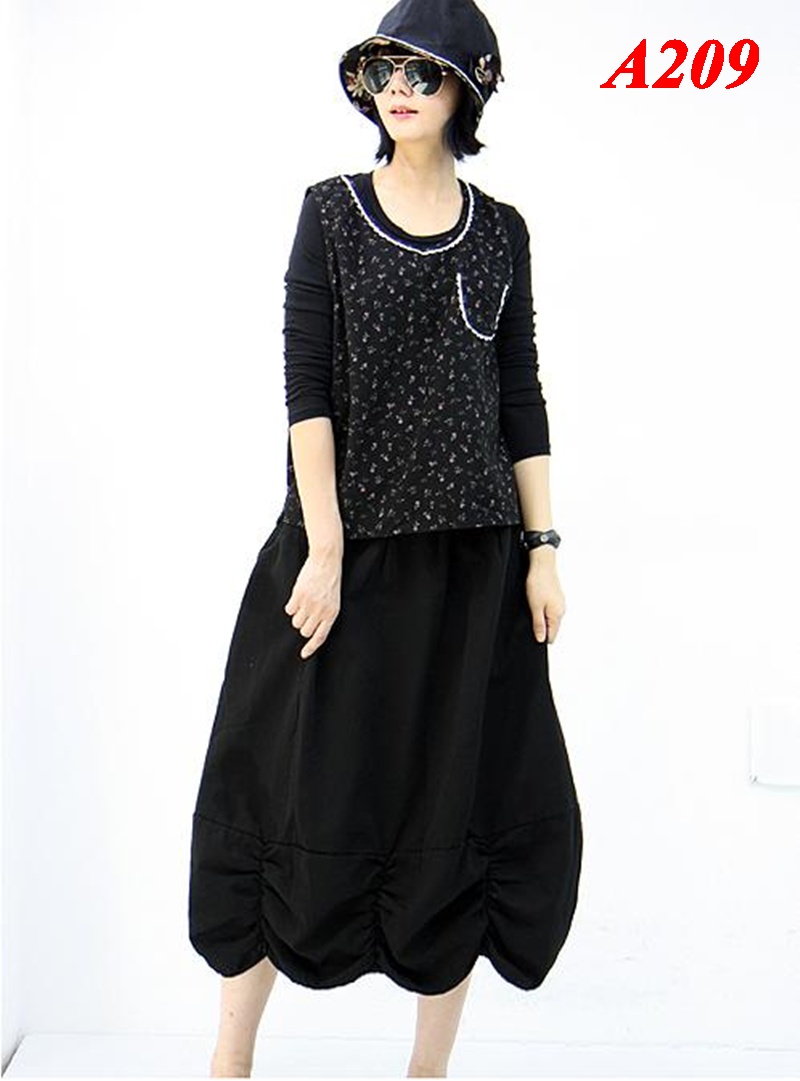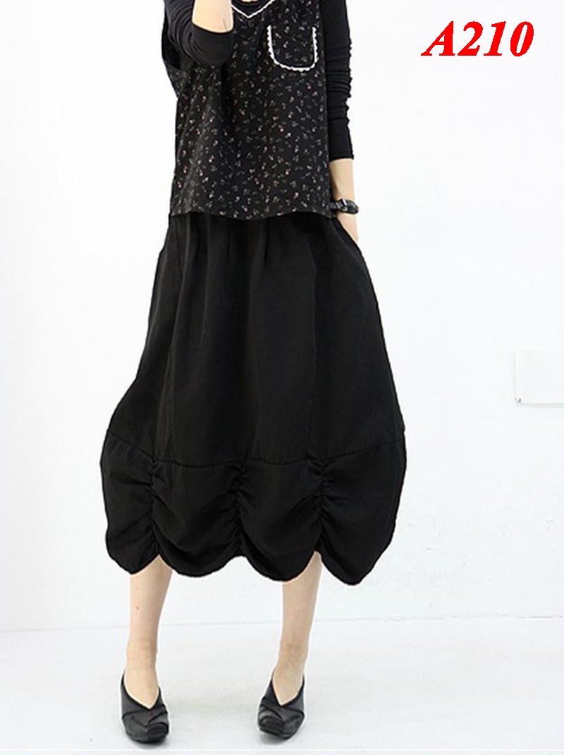 ELEON 2013秋 韩版 文艺范 亚麻休闲大码 中裙/半身裙 A210#