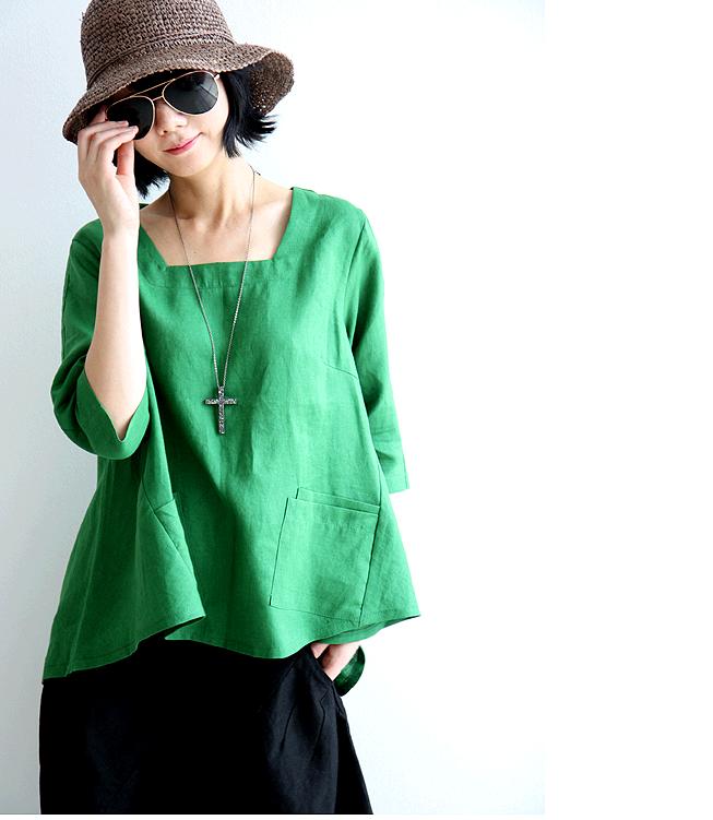 ELEON 2014秋 韩版 文艺范 亚麻 中袖衬衫 外套 A177