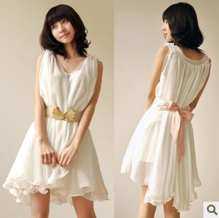 爆款连衣裙包邮 伴娘礼服 纯色荷叶边短款无袖雪纺大摆裙子8032#