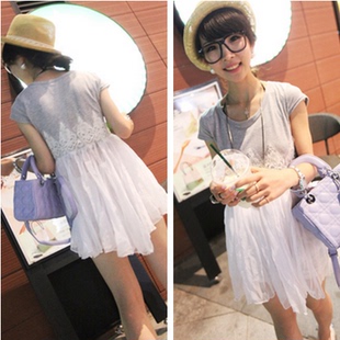 6087#英伦气质风 雪纺百褶袖口蕾丝裙