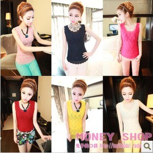 6281# 美美的花瓣波浪边双层全蕾丝拼接弹力网纱打底小背心