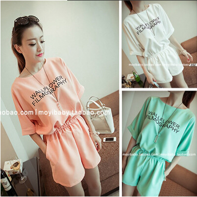 264# 2014新款 清新糖果色后拉链简约字母 收腰连体裤短裤