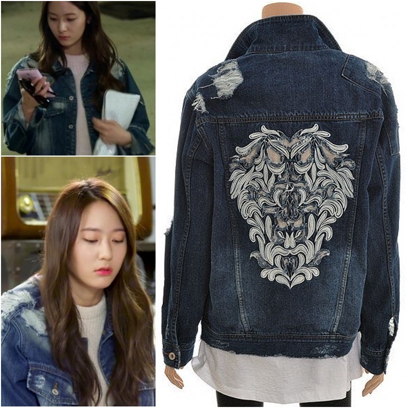 预售505#韩国风继承者们同款破洞牛仔外套 刺绣牛仔衣 女