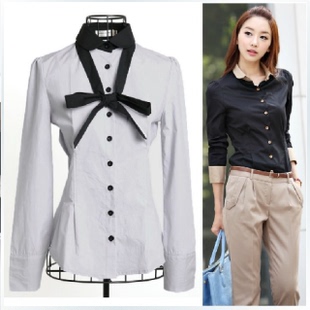 2013欧美风冬装新款百搭气质订钻领女长袖衬衫 6009#